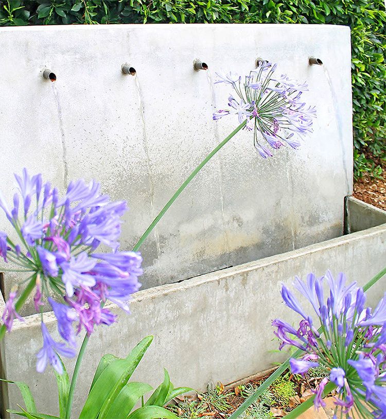 Concrete water features and fountains can work well in a modern landscape design. They add a soothing element and help to block other sounds.