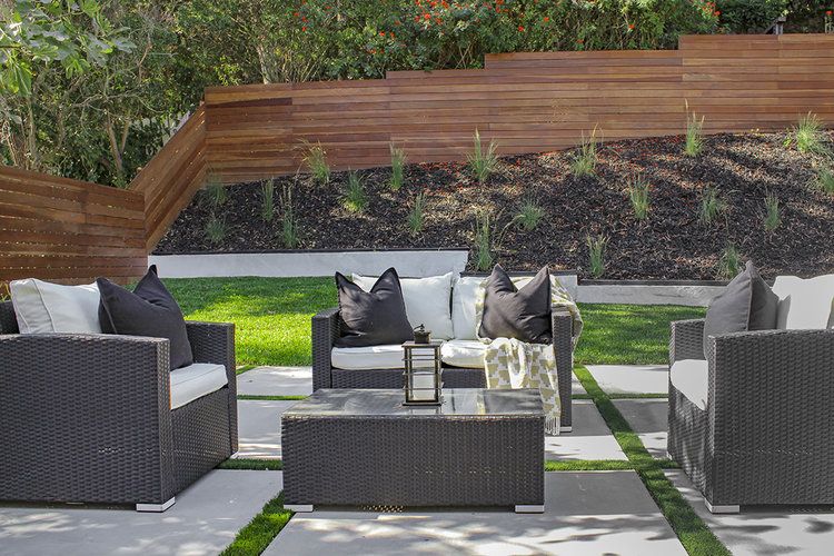 Concrete water features and fountains can work well in a modern landscape design. They add a soothing element and help to block other sounds.